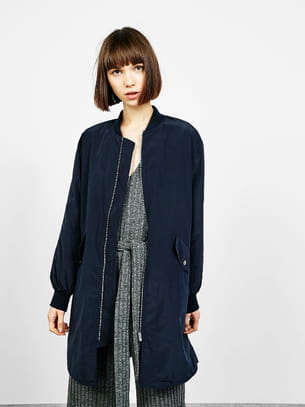 Veste longue bleu marine en nylon type bomber de Bershka