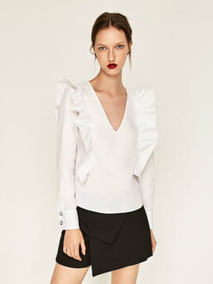 Top blanc avec décolleté et volants de Zara