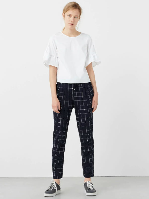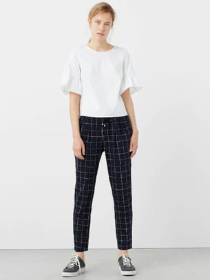 Pantalon carotte imprimé à carreaux bleu marine de Mango