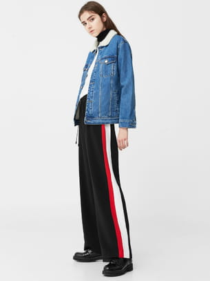 Pantalon noir large  avec des liserés rouge et blanc de Mango