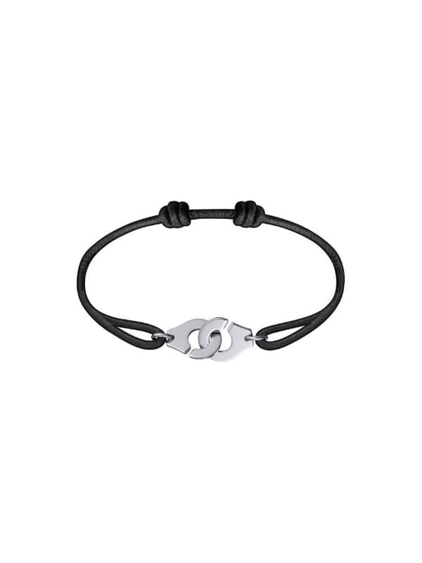 Bracelet pour homme avec cordon noir en cuir et menottes en argent de Dinh Van
