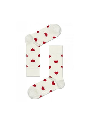 Chaussettes blanches en coton avec cœurs rouges en motifs de Happy Socks