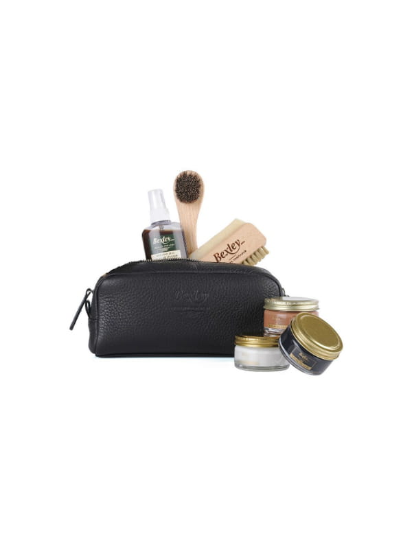 Trousse en cuir plein fleur avec six produits d'entretiens de chaussures de Bexley