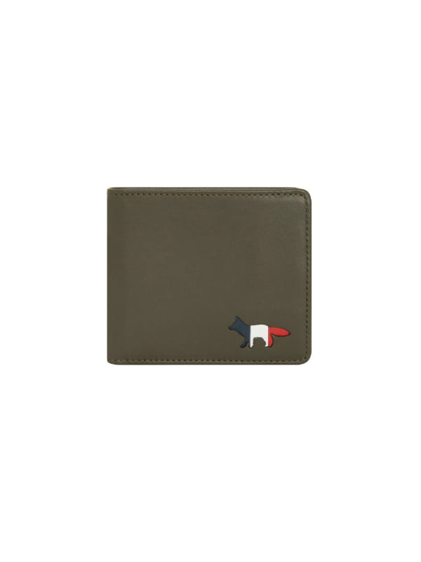 Portefeuille kaki en cuir avec logo tricolore brodé de Maison Kitsuné