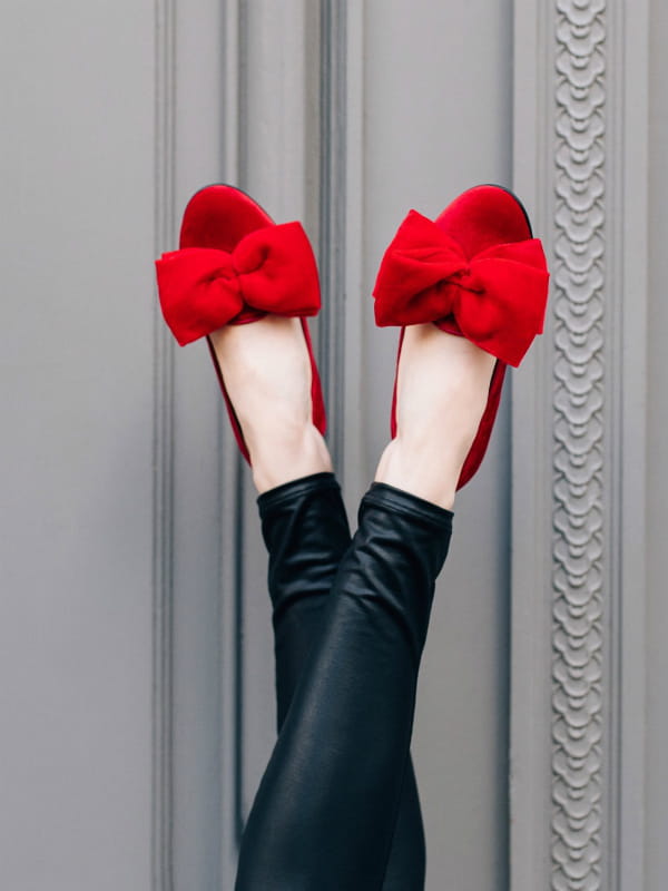 Slippers rouges en velours avec nœud sur le dessus de Chatelles