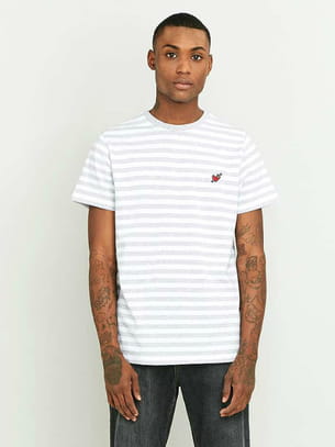T-shirt blanc à rayures grises avec cœur brodé sur la poitrine de Shore Leave chez Urban Outfitters