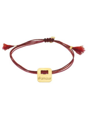 Bracelet à cordons multiples rouges avec petite plaque en vermeil gravée de La Môme Bijou