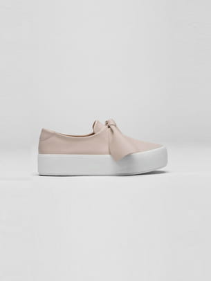 Sneakers sans lacet roses pales façon cuir avec nœud sur le dessus de Pull and Bear