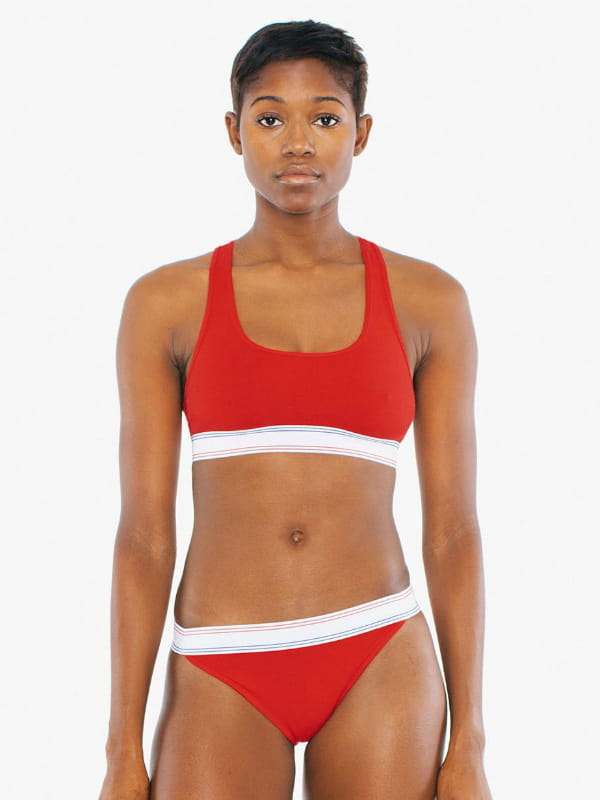Ensemble avec brassière et culotte rouges à élastiques tricolores de American Apparel