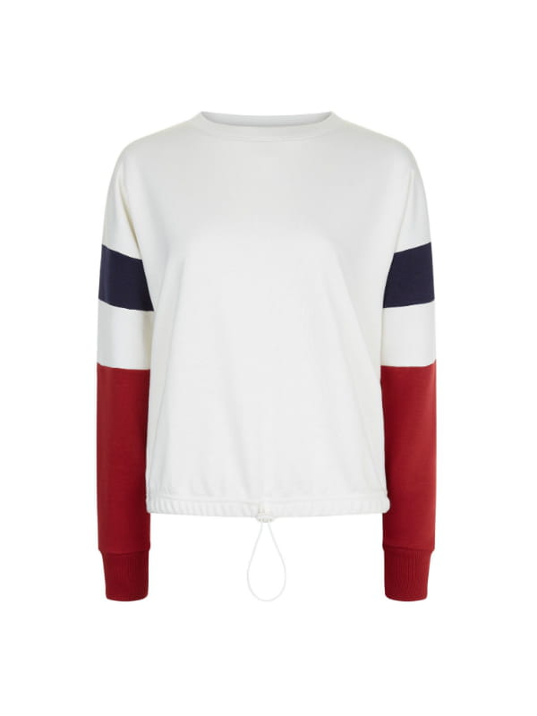Sweat blanc avec manches contrastées et cordon de serrage de New Look