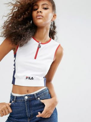 Top blanc à détails rouges et bleus avec zip de Fila chez Asos