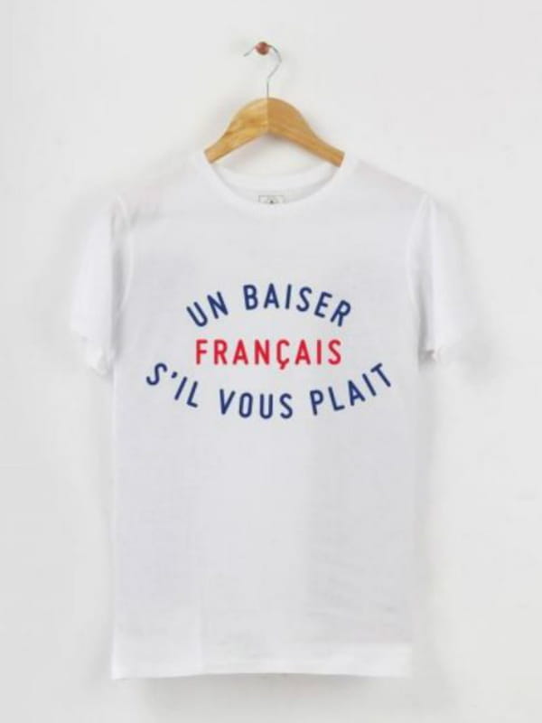 T-shirt blanc en coton avec phrase tricolore imprimée de Un baiser français