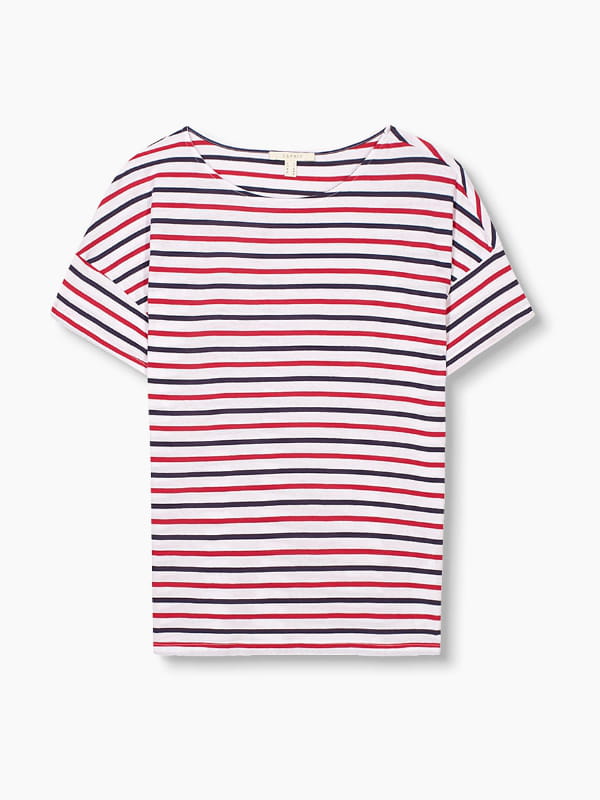 T-shirt blanc en coton à rayures marine et rouges de Esprit