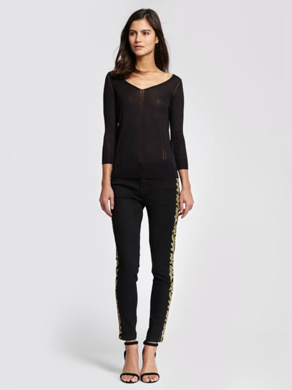 Jean slim noir à broderies florales dores sur les côtés de Morgan