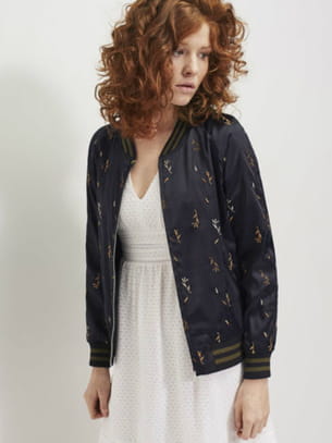 Blouson bomber brodé all over motifs feuilles marine de IKKS