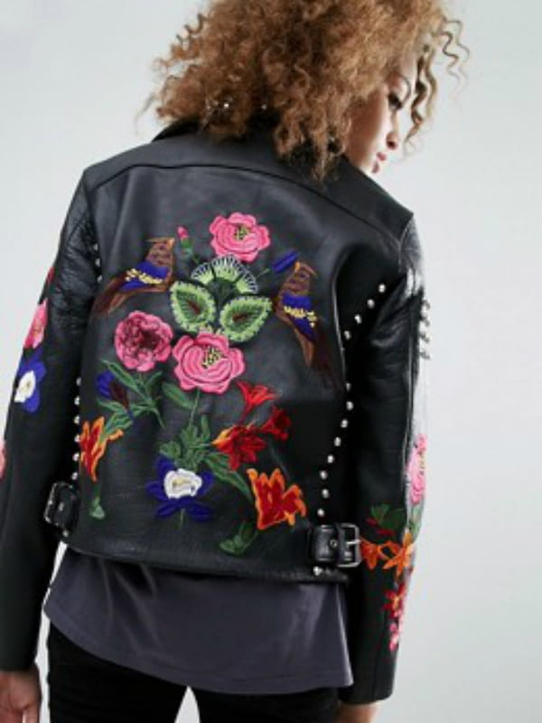 Veste en cuir avec clous et broderies florales de Asos Premium