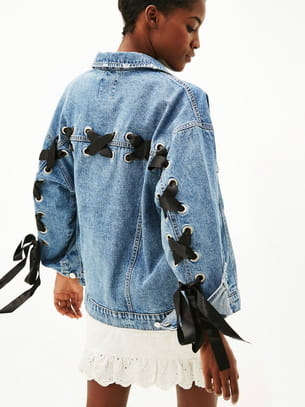 Veste en denim bleu lavé avec ruban noir de Bershka
