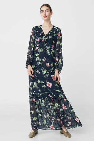 Robe fluide bleu marine à fleurs de Mango