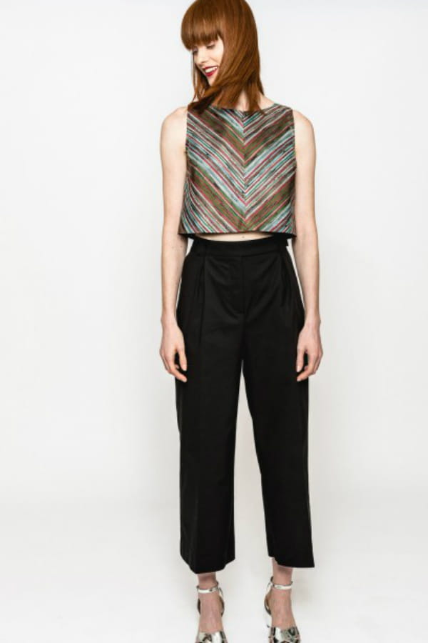 Pantalon 7/8 ème droit noir à pinces et cropped top sans manches de Sinequanone