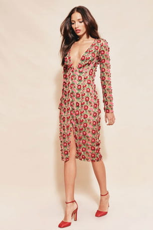 Robe texturée midi à fleurs nude rose et verte de For Love and Lemons