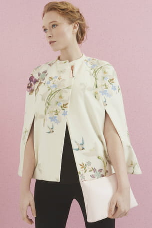 Cape courte en laine et cachemire ivoire imprimé fleuri de Ted Baker