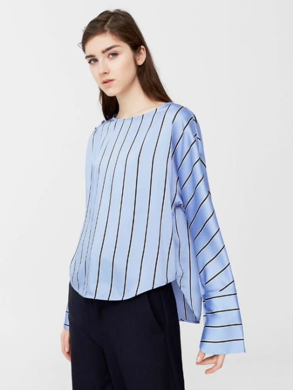 Blouse fluide bleu ciel à rayures et manches exta longues de Mango