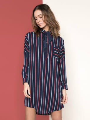 Robe chemise liquette à rayures bleu nuit blanche et rouge de Suncoo