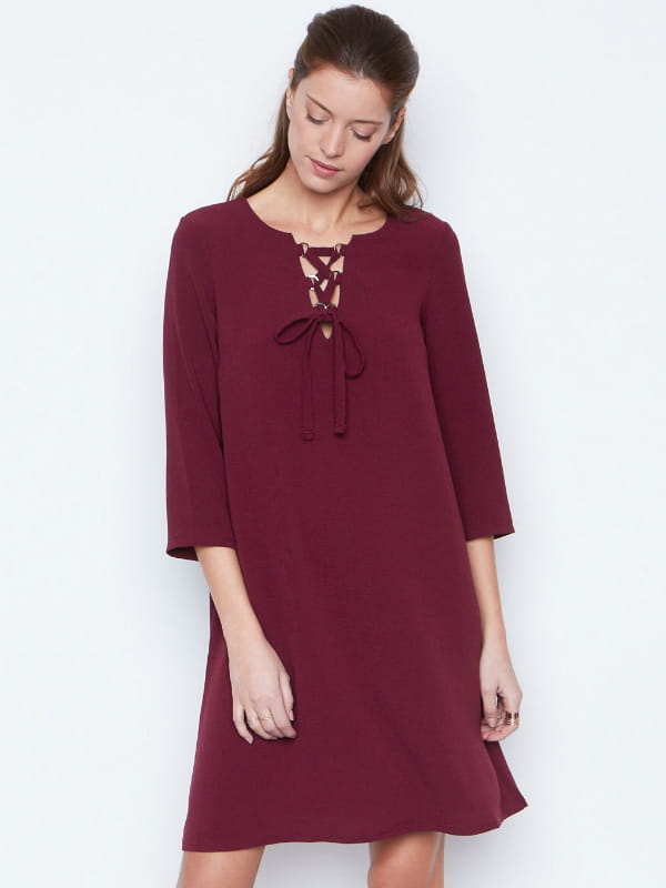 Robe évasée à manches 3/4 bordeaux de Etam
