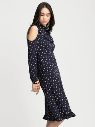 Robe à découpes aux épaules et volants fleurie bleu marine de C&A