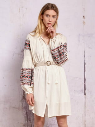Robe à manches longues brodée avec liens à pompons de Swildens