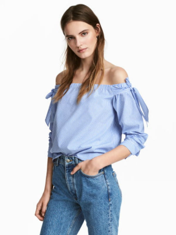 Blouse épaules nues en coton avec rayures bleues et blanches de H&M
