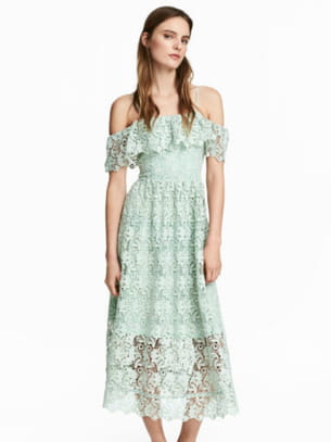 Robe épaules dénudées vert menthe motif dentelle de H&M
