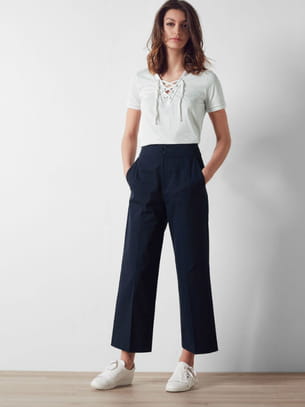 Pantalon ample cropped bleu nuit de Comptoir des Cotonniers