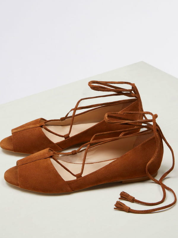 Ballerines en velours camel à bout ouvert à lacets de Comptoir des Cotonniers