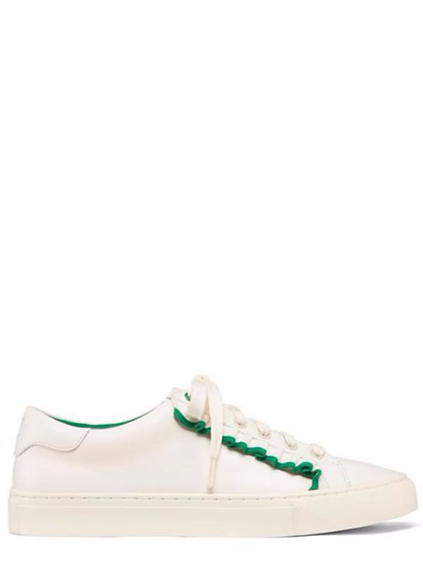 Baskets blanches à froufous et liseré vert de Tory Burch