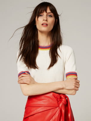Pull à manches courtes écru avec col et poignets multicolores de Uterqüe
