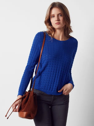 Pull bleu cobalt avec cachemire et trompe l'œil dans le dos de Comptoir des Cotonniers