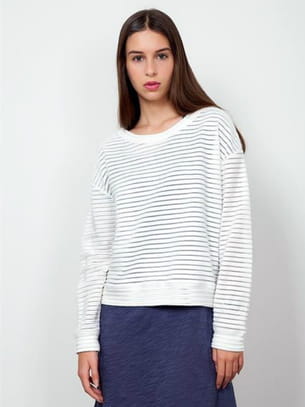 Sweat manches longues et col rond blanc à rayures transparentes de LEÏ 1984