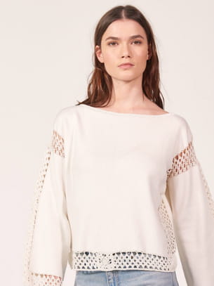 Pull écru léger et ajouré avec détails en crochet de Sandro