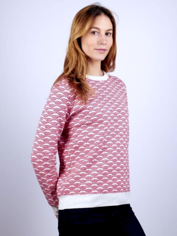 Pull à motif japonais en coton cachemire rouge et blanc de Hircus