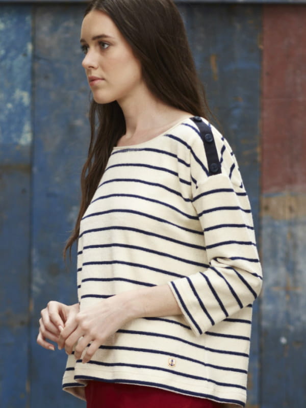 Sweat rayé écru et bleu marine façon marinière coupe large de Armor Lux