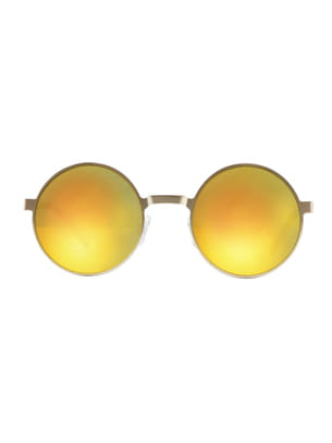 Lunettes rondes à verres miroirs jaunes et monture en métal marron et doré de IYÜ Design