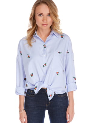 Chemise à manches longues à rayures et broderies fleurs de Opullence