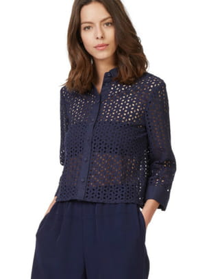 Chemisier en dentelle anglaise bleu marine de Monoprix