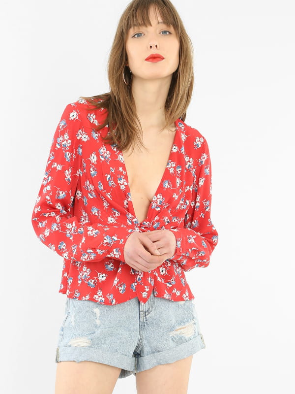 Chemisier à manches longues décolleté imprimé fleuri de Pimkie