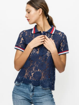 Top en dentelle avec détails tricolores bleu de Sinéquanone