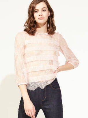 Top à manches 3/4 transparent en dentelle nude de Claudie Pierlot