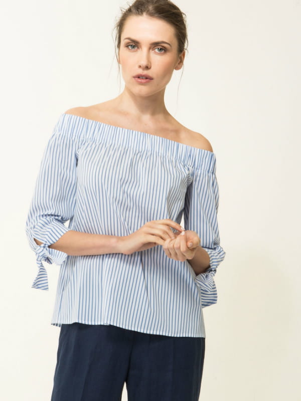 Top à encolure Bardot à rayure bleu et blanc de 1.2.3