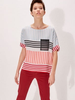 Top à manches courtes large à rayures multicolores de Cop.Copine
