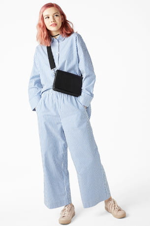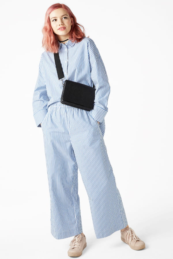 Pantalon large à taille élastique rayé bleu et blanc de Monki
